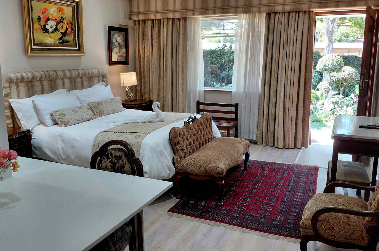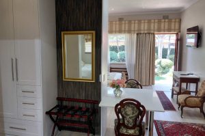 The Rose Room has undergone a complete makeover, now featuring a modern kitchenette. It is also a family room with two sleeping areas: a queen bed and a single bed. The room also offers a private entrance from the garden, along with an en-suite bathroom equipped with a bath/shower combo. Additionally, you’ll enjoy a large 4K TV with access to streaming services.